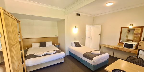 Clean, tidy, comfortable. Our queen rooms are a lovely option for guests requiring a queen bed.